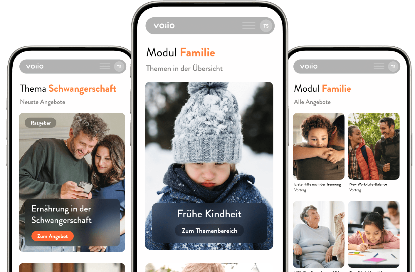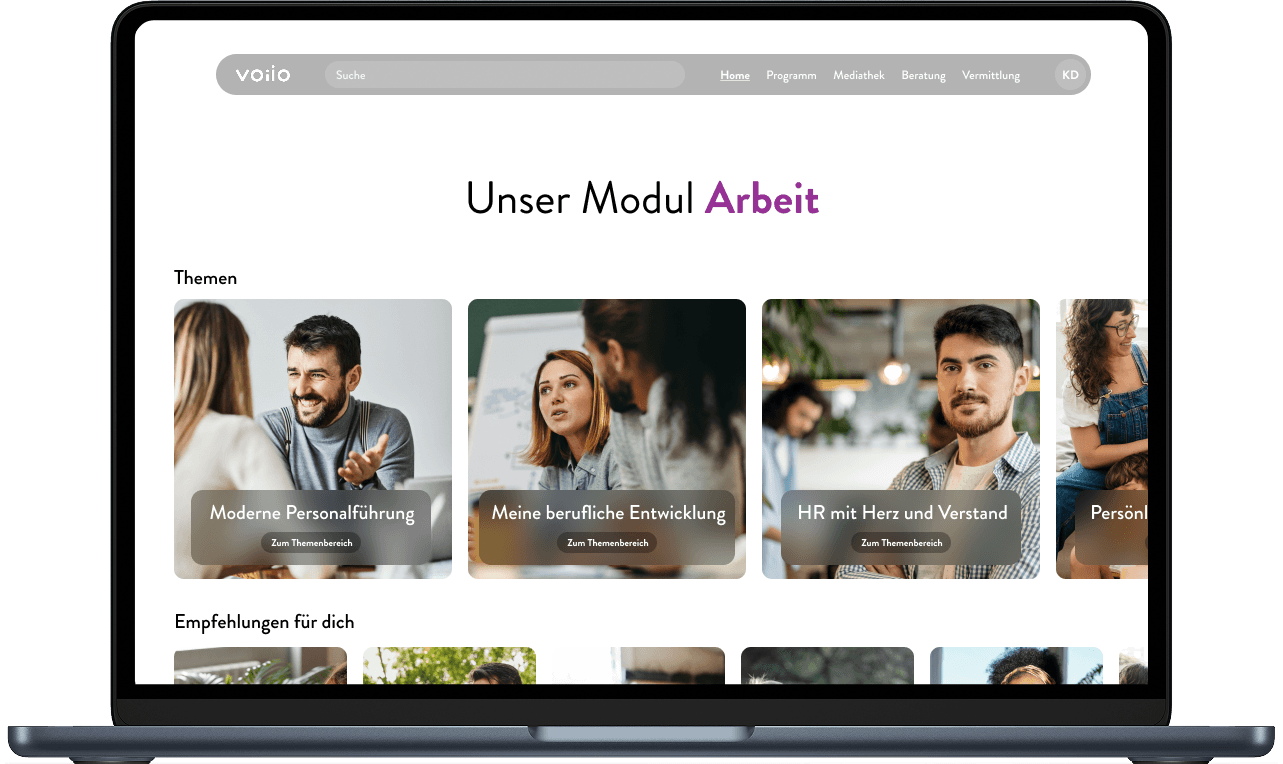 voiio bietet ganzheitliche Unterstützung in den Modulen Gesundheit, Familie und Arbeit an. Denn wir glauben, dass diese den größten Einfluss auf das Stressempfinden und den Umgang mit täglichen Herausforderungen haben. Deshalb stehen sie bei uns im Mittelpunkt.